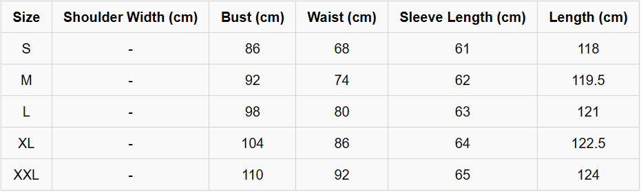 Dress Size Chart