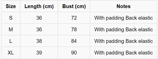 camisole Size Chart
