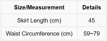 Mesh skirt Size Chart